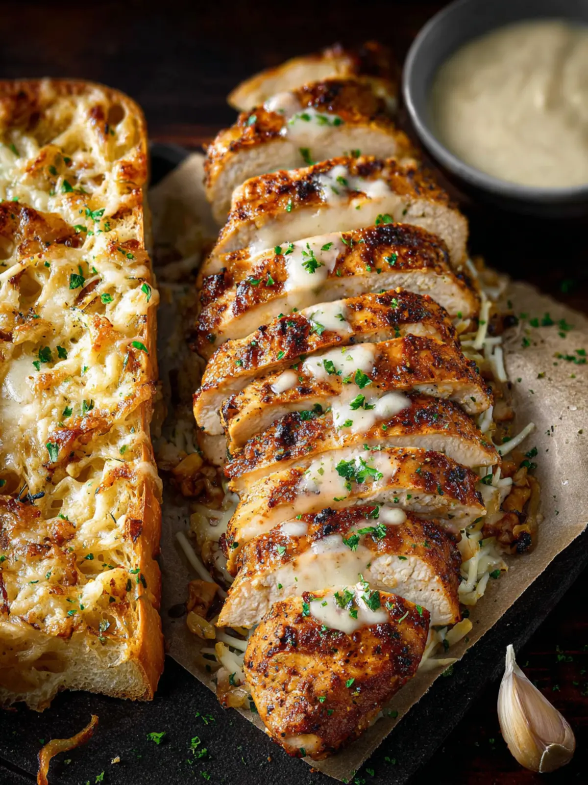 Blackened Chicken Alfredo Garlic Bread: Creamy Comfort Awaits!
