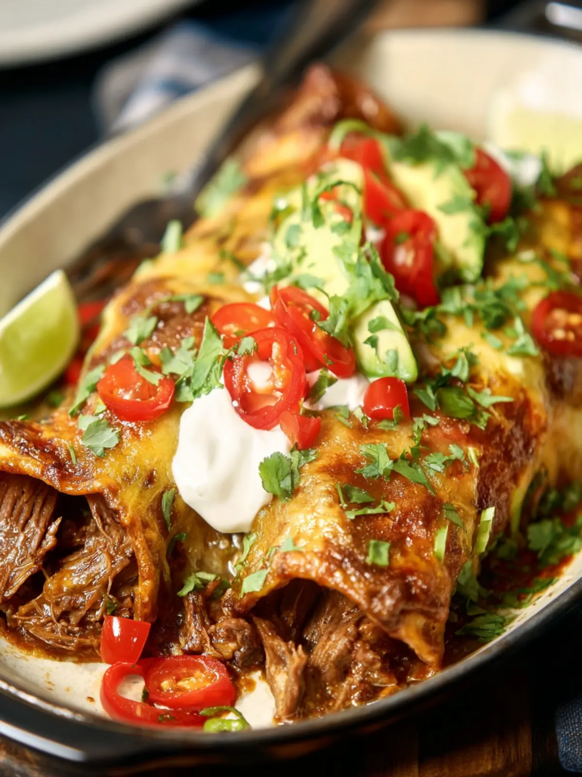 Presentation matters! Arrange the brisket enchiladas on a colorful platter, garnished with avocado slices and a sprinkle of crumbled queso fresco. This not only makes for a visually stunning meal but also invites everyone to dig in and enjoy the fiesta of flavors. Bon appétit!