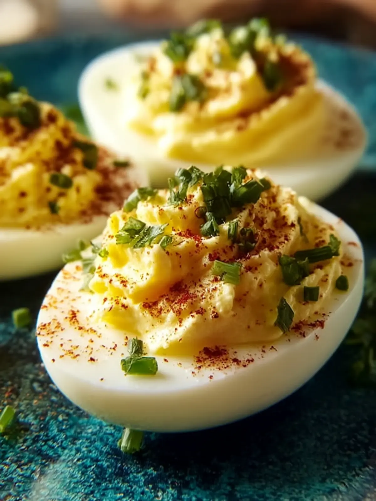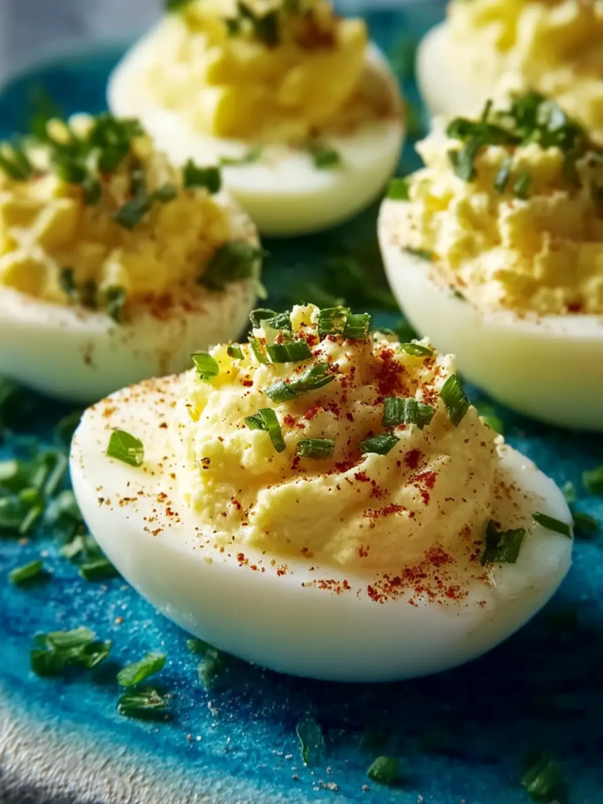Versatile Appeal: With simple ingredients and a straightforward preparation, these deviled eggs cater to diverse dietary preferences. They are naturally gluten-free and can easily be adjusted for vegan guests by using plant-based mayonnaise.