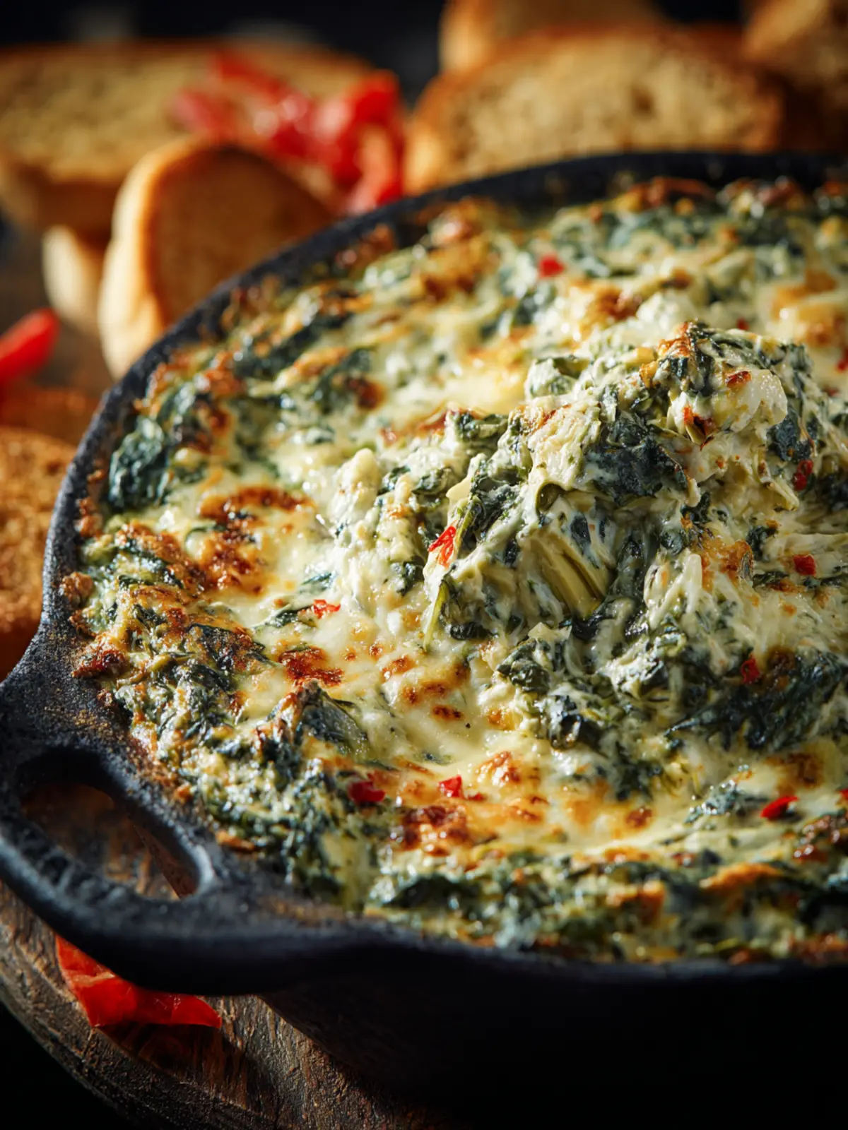 If you crave a bit of heat, try stirring in crumbled feta cheese and red pepper flakes. The feta will add a sharp, tangy flavor that beautifully contrasts with the earthy notes of spinach and artichoke. This spicy version is perfect for those who enjoy a little kick with their dips.