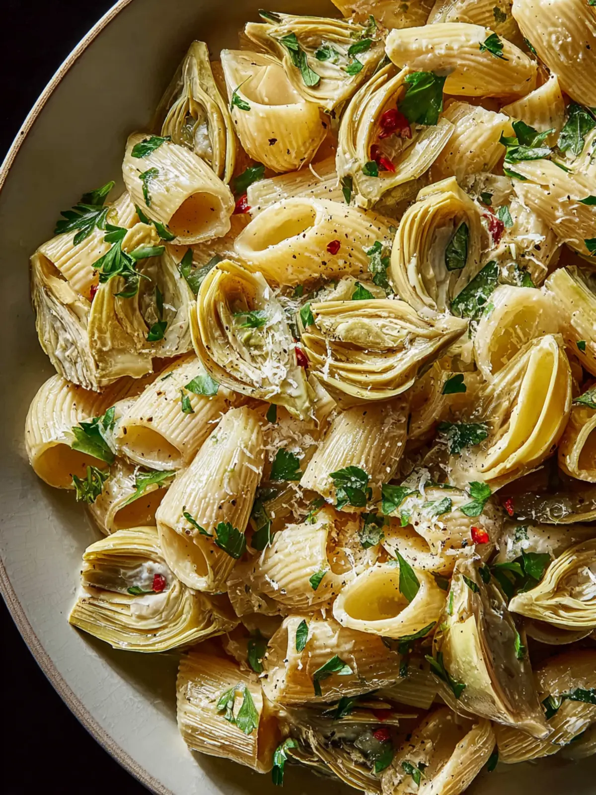 Elevate your herby artichoke pasta by garnishing it with freshly grated Parmesan cheese. Not only does it add a rich, nutty flavor, but it also brings an appealing visual element to your dish. A sprinkle of red pepper flakes can introduce a hint of heat for those who crave spice.