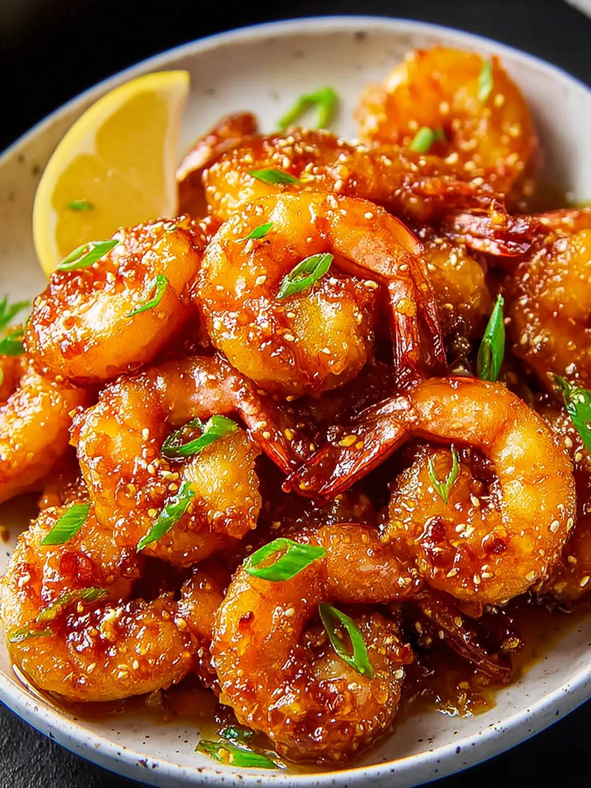 Delicious crispy shrimp coated in a sweet and spicy honey glaze.