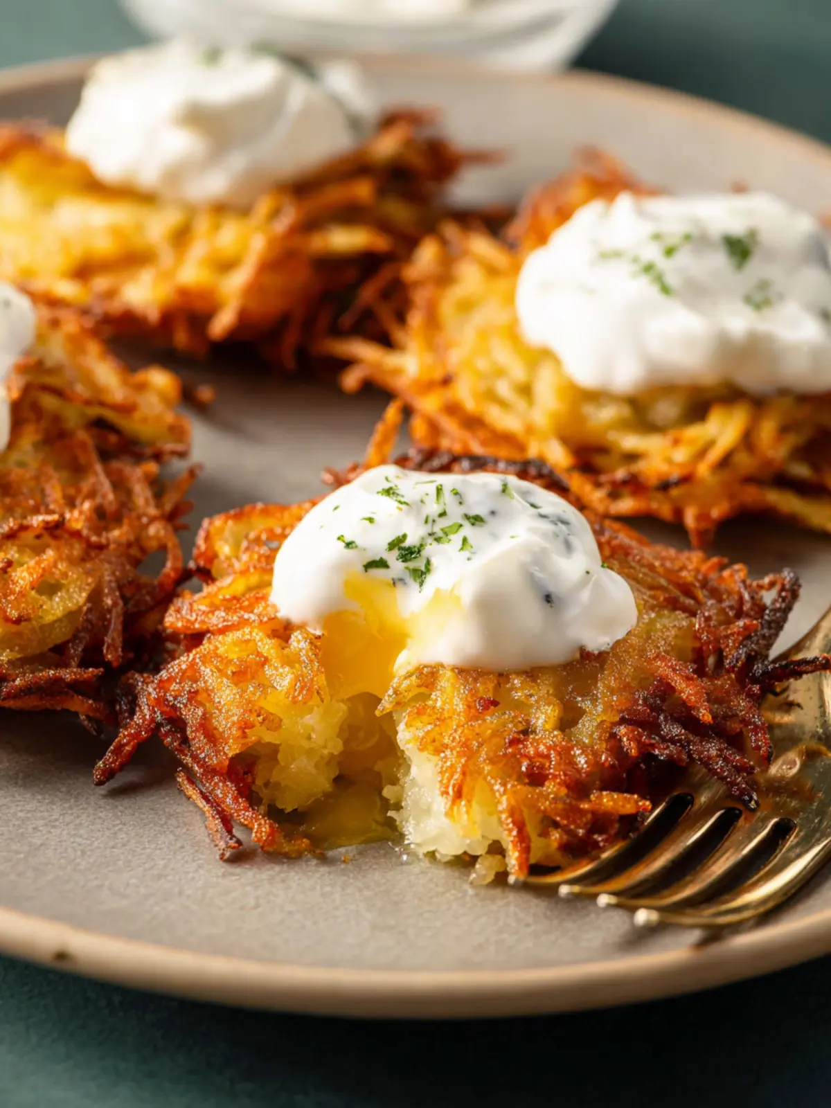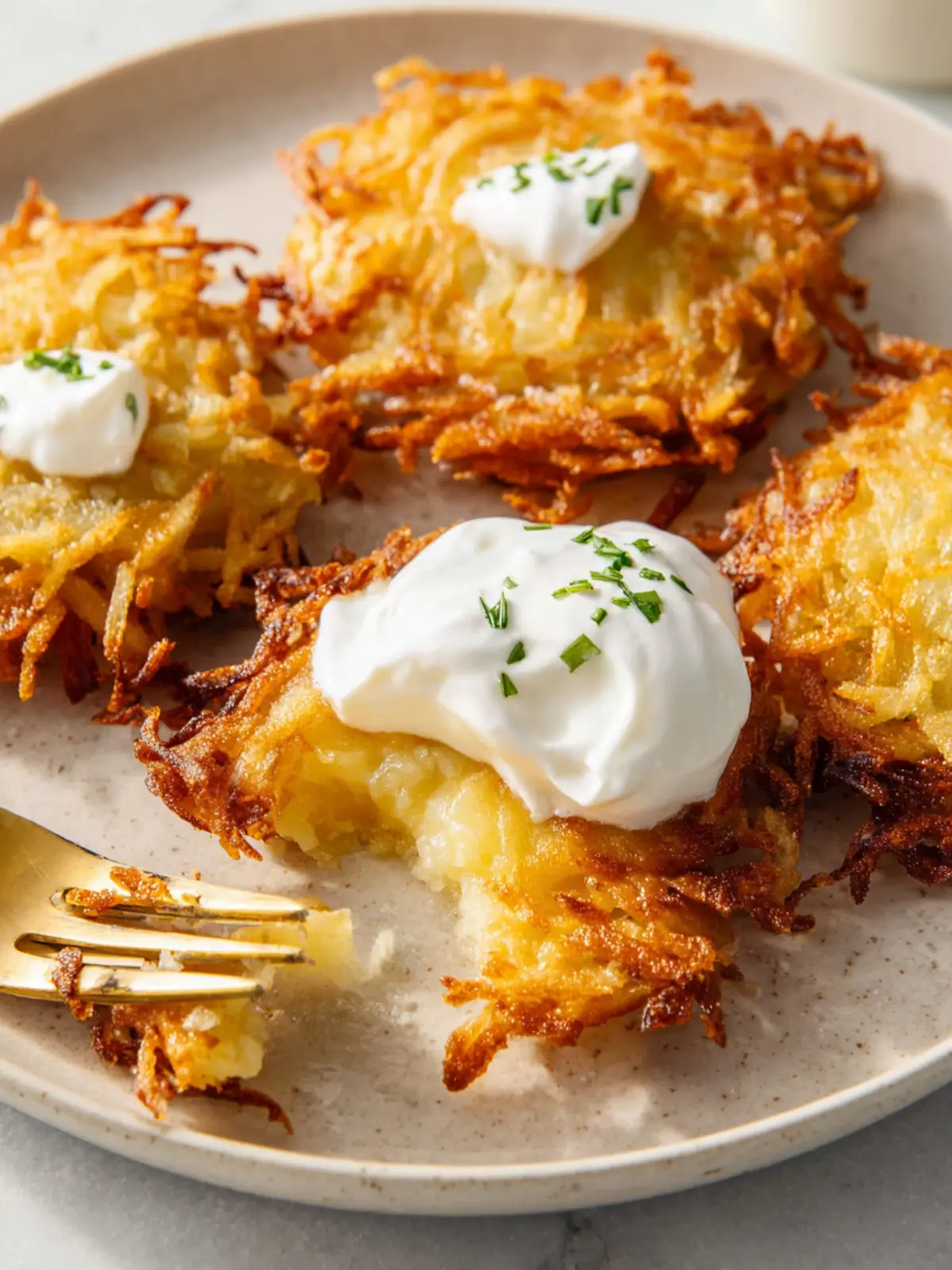 If you’re making several batches, keep the already fried latkes warm in an oven set to 200°F. This way, everyone can enjoy them freshly crispy when it’s time to eat.