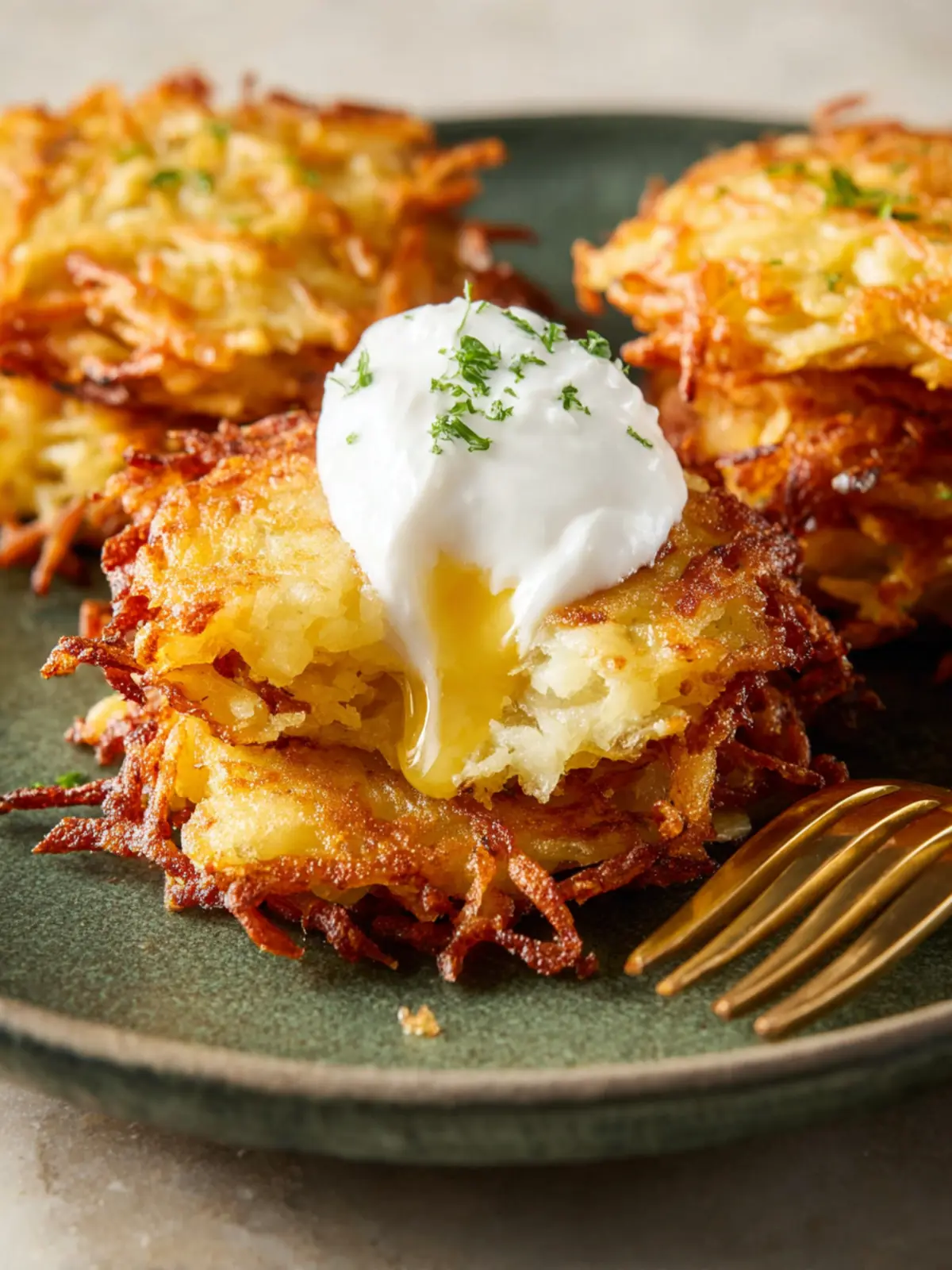 After grating your potatoes, rinse them in cold water to remove excess starch, then pat them dry thoroughly with a kitchen towel. This extra step helps achieve that coveted crispy outside.