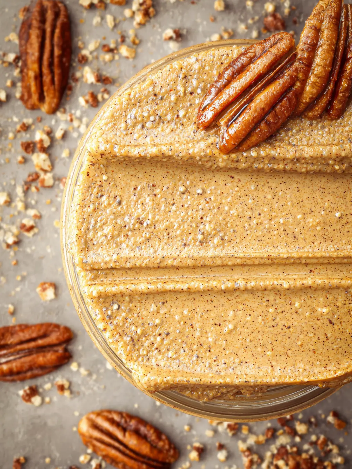 A rich and creamy pecan butter made from roasted pecans.