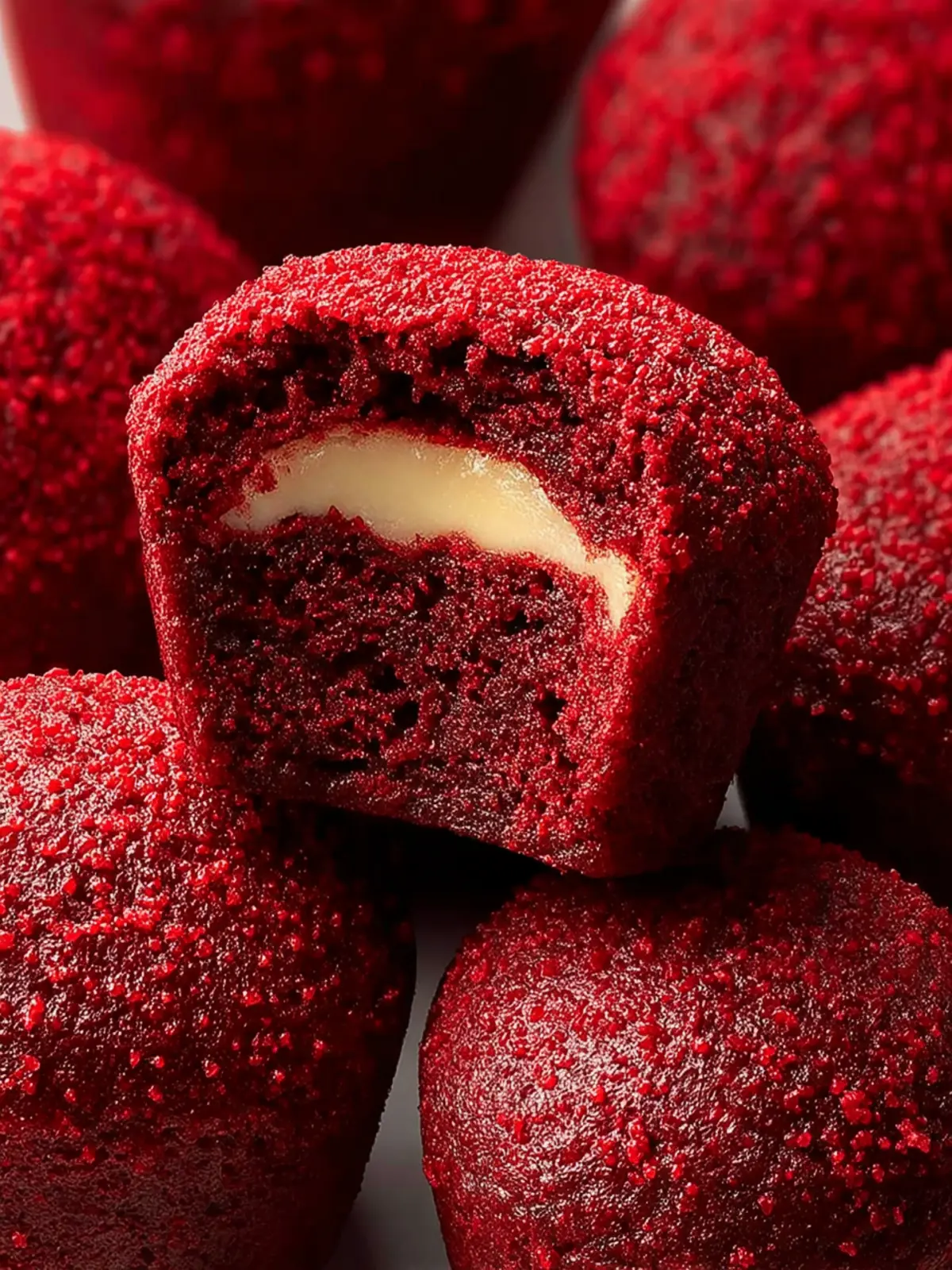 • Visual Appeal: The striking red hue topped with white frosting makes these bites a stunning centerpiece for any dessert table. They are just as appealing to the eyes as they are to the palate.
