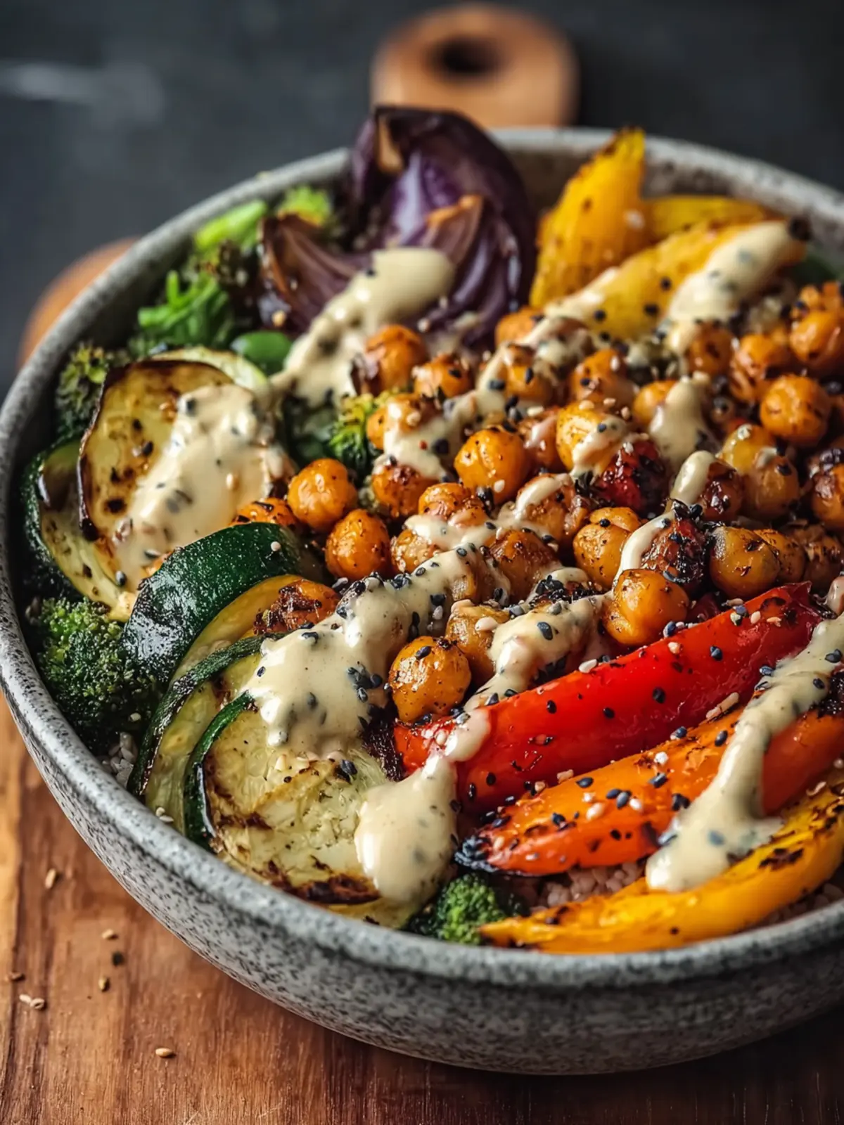 Roasted veggies make for an incredibly satisfying base in this dish. They caramelize beautifully, intensifying their natural sweetness and flavor. When combined with protein-rich chickpeas, these bowls transform into a fulfilling meal that fuels both body and soul—perfect for busy young professionals looking to maintain a healthy, balanced diet amid their hectic schedules. Plus, who can resist a drizzle of Maple Dijon Tahini Dressing? The creamy texture and the perfect balance of sweet and savory will elevate your roasted veggies to a whole new level.