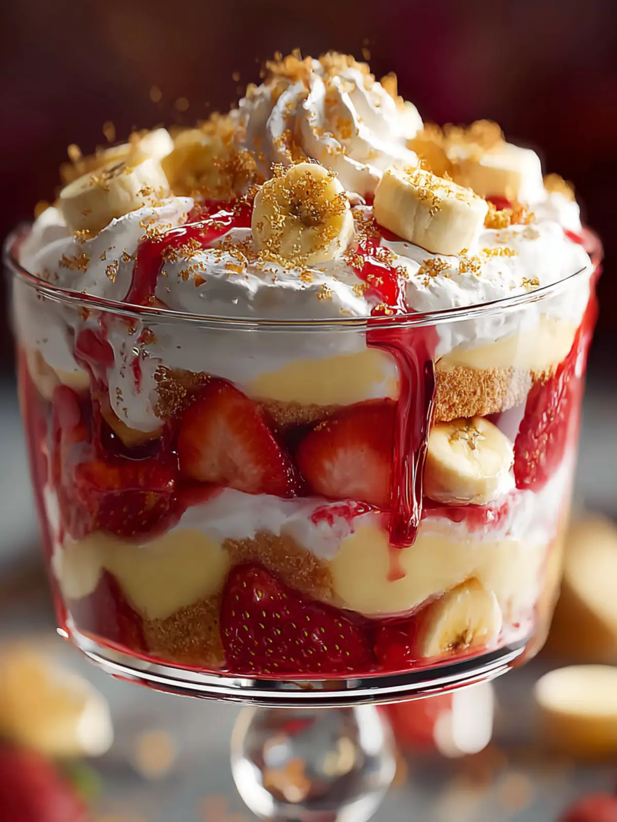 • Texture Contrast: Each layer adds a new dimension to the dessert. The creamy pudding contrasts beautifully with the softness of the strawberries and bananas, while the crunchy cookies surprise your palate, making every bite feel exciting.