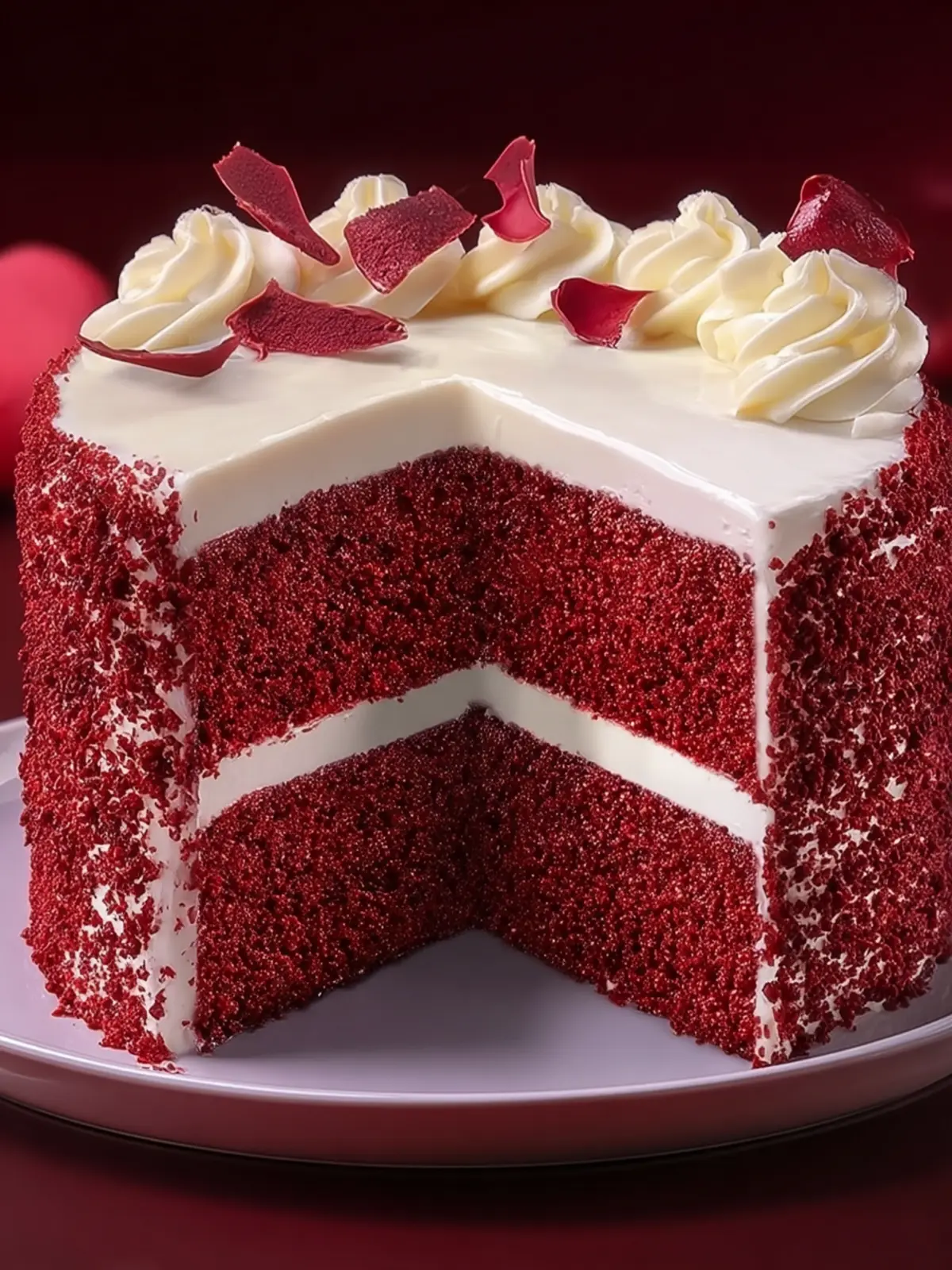 This classic Red Velvet Cake is rich, moist, and topped with creamy frosting, perfect for any celebration.